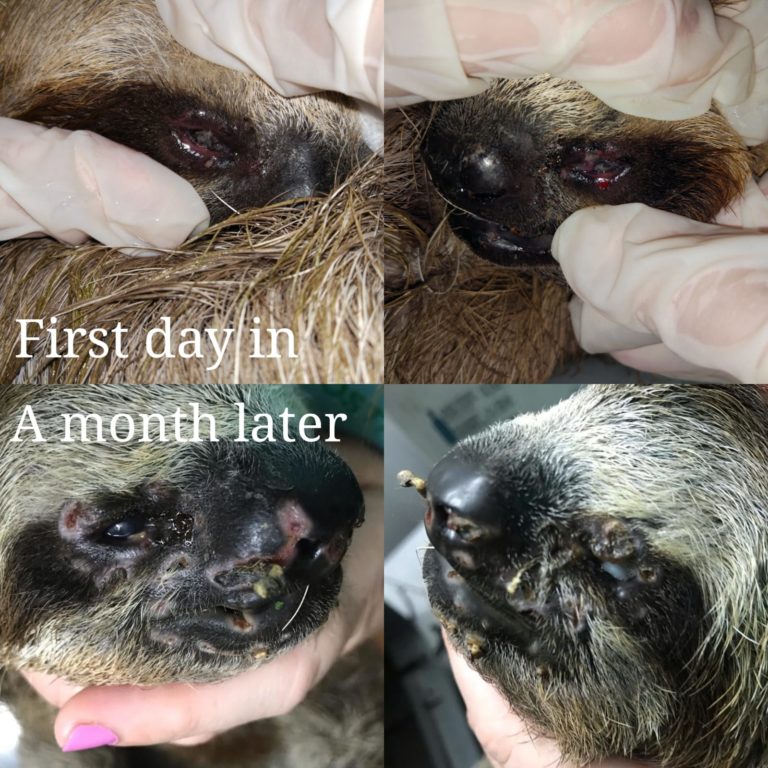 Nemo has been with TSI for a little over a month now. We originally received a call from a nearby hotel that informed us about a fallen sloth on the ground. When we got to him it was very obvious why he had fallen, he couldn’t see!