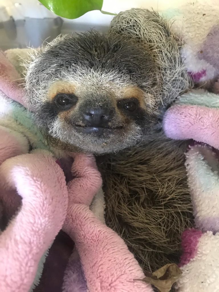 This just in! The Sloth Institute found little Wall-E on the ground by a local hostel. He’s a juvenile and is pretty weak with a bacterial infection. The Sloth Response team went out to rescue him in the middle of the night.