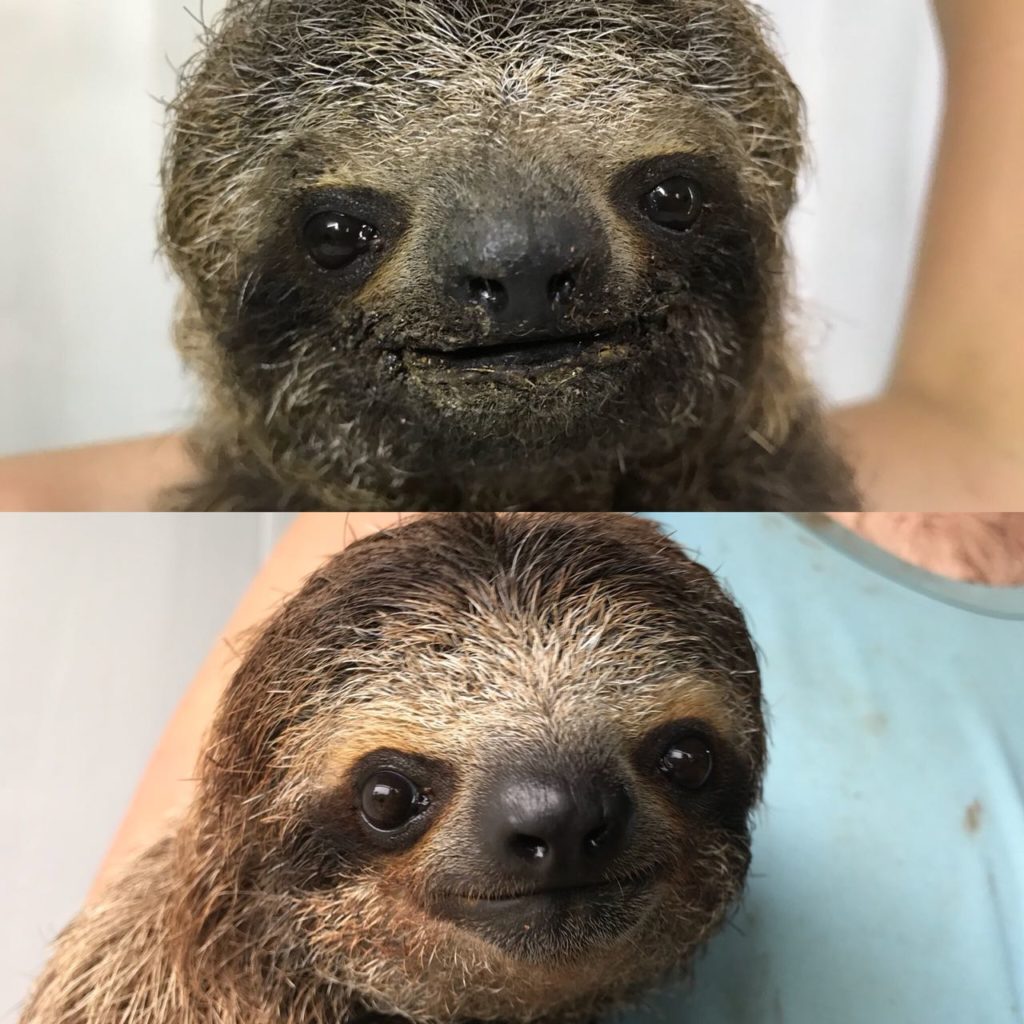 My most rewarding case thus far is with Humpty Dumpty. I am sure if you follow our page you have seen his story. To see this tiny little baby be so incredibly resilient after such a rough start (which I fully admit I was very guarded with his outcome) was amazing. Day after day watching his progress and see him become more active and doing all the things a healthy baby sloth would do was amazing. Today he is regressing normally and as Sam refers to him every day is a “Perfect Baby”! Animals are so amazing