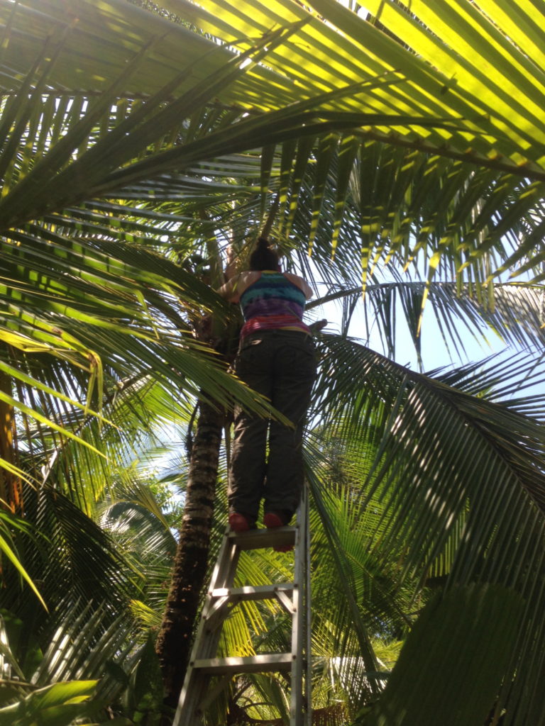 Once we received this call, we immediately jumped into action and went to see how we could help. Upon arrival the sloth seemed pretty normal…curled up in a ball sleeping in the top of a palm tree…but obviously I needed to get closer in order to assess his health status.
